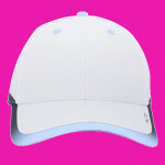 * 100% polyester * Breathable * Wicks moisture * Mid-profile, structured crown * Black undervisor * Contrast eyelets * Pro-stitched finish * Contrast gradient binding * Hook-and-loop adjustable