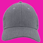 * Sublimated heathered, lightweight polyester blend * Perforated side panels * Breathable * Wicks moisture * Low-profile, structured crown * Black undervisor * Front panel eyelets * Pro-stitched finish * Hook-and-loop adjustable * A-Flex(r) stretch sweatband