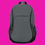 Heavy duty 600-denier polyester with soft PVC backing * Mesh paneled zippered interior ball compartment * Two zippered side compartments with mesh panels * Adjustable padded shoulder straps * Hand strap * 18"W x 17"H x 9"D