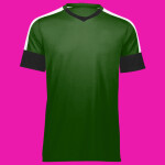 100% polyester wicking knit * Wicks moisture * V-neck collar * Contrast color inserts
