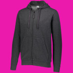 * 9 ounce 60% cotton/40% polyester athletic fleece * Tear away label * Front zipper * 2-piece jersey lined adjustable hood * Flat braid drawcord on sizes S-5XL * Set-in sleeves * Front pouch pockets * Rib-knit cuffs and bottom band