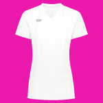 * 84% polyester/16% spandex knit with color secure(r) technology that helps prevent dye migration * 90% polyester/10% spandex wicking mesh inserts with color secure(r) technology that helps prevent dye migration * 4-Way stretch properties allow for increased mobility * Wicks moisture * Ladies' fit * Tag-free label * High Five logo on right chest * V-neck collar * Strategically placed seams for maximum mobility and comfort * Raglan sleeves