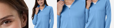 - Curved hem with 1/2" hem turnback offers a flattering fit and stays tucked or untucked with ease