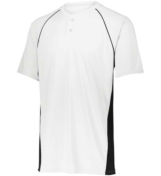 100% polyester smooth knit with color secure(r) technology on front and back panels * color secure(r) technology prevents dye migration * 92% polyester /8% spandex pinhole mesh inserts for breathability * Wicks Moisture * Tag-free label * Two-button placket * Contrast color inserts and piping * Raglan sleeves * Longer length