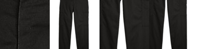 - Two button-thru, hex-style pockets with angled bartacks, bartacked pencil stall on left pocket