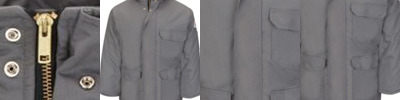 - Two-way, separating, heavy-duty Nomex®, taped brass zipper, fully covered with insulated storm flap, concealed snap closure