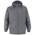 CCM Team Mid Weight Jacket features side zipper pockets with reflective tape, adjustable body hem with bungee. Elastic binding at sleeve openings. Polar fleece lining inside collar and body. The sleeves have woven insulation. An interior zipper for greater post embellishment access and inner drop-in pocket with Velcro™ closure. Strategically positioned CCM embroideries provide full front and back embellishment zones.