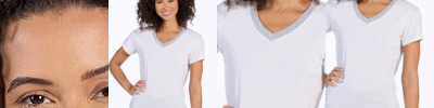 - Body color modified V-neck inset collar with contrast-color front of V-neck