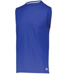 100% polyester wicking knit * Wicks moisture away from the body * Tear away label * Self-fabric binding at neck and armholes * Double-needle hemmed bottom