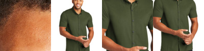 With smart tailoring and a modern fit, this shirt will follow your every move, day or night. Topped with rimmed buttons and a back yoke seam, the solid fabric has a subtle, heathered look thanks to its end-on-end weave. Fabric+Weight 3.4-ounce, 56/36/8 cotton/poly/spandex end-on-end (Air Blue and Gusty Grey) 3.5-ounce, 56/36/8 cotton/poly/spandex (Deep Black) 3.8-ounce, 56/36/8 cotton/poly/spandex (White) Features+Benefits Easy care Open collar Rimmed, satin-finished buttons Back yoke Relaxed fit Drop tail hem