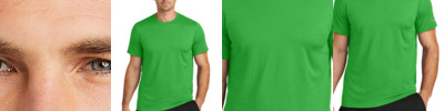 The building block to the contemporary wardrobe, this refined t-shirt is a vehicle for style and expression. Equal parts soft and stretchy, the moisture-wicking fabric offers a gentle drape. Self-fabric crew neck, self-turned cuffs lay smooth on the arm, while the self-turned hem's side vents pull off the untucked look. Fabric+Weight 5-ounce, 92/8 poly/spandex jersey 6.2-ounce, 94/6 poly/spandex jersey (White) Features+Benefits Moisture-wicking Self-fabric crew neck Self-turned cuffs and hem