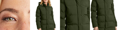 With a design that easily transitions from office to street to home, and a soft, supple hand, this cold-weather layer is luxurious and high-performing. With a moisture-shedding DWR exterior, the interior features lofty, lightweight insulation for down-like warmth and the easy care of a synthetic. Fabric+Weight 100% polyester 5K/3K waterproof breathable fabric 7-ounce, 100% polyester blown insulation Features+Benefits Molded front zipper Quilted 3-piece hood Slight A-line silhouette Zippered hand pockets Adjustable, locking drawcord hem