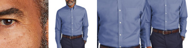 This iconic dress shirt combines a little bit of stretch with a higher back yoke for a classic fit. A premium wrinkle-free treatment process means effortless style and a sharp, professional finish all day long. 4.4-ounce, 97/3 cotton/spandex fine yarn count Taped seams Button-down collar Left chest pocket Pearlized buttons Rounded, single-button cuffs Rental-friendly