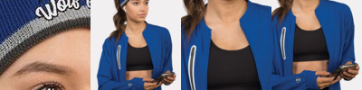 * Eco-Revive(r) product featuring 80% recycled polyester/20% polyester * Ladies' fit * Hanger loop label * Exterior faux leather logo loop label * Full zip * Front zippered pockets * Spandex bound open bottom