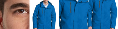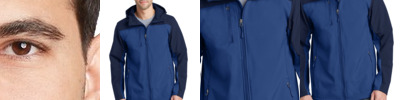 An attached hood and bold colorblocking give this well-priced, water-resistant soft shell extra rain-shielding protection and strong style.