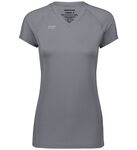 100% polyester wicking smooth knit with color secure(r) technology that helps prevent dye migration * Dry-Excel(tm) Micro-Interlock smooth 100% polyester knit inserts * Wicks moisture * Ladies' fit * Updated tailored fit * Tag-free label * Outside locker label * Modified V-neck collar * Designed to be NFHS compliant