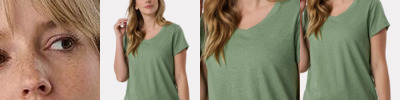 Flowy fit Tailored sleeve Side seamed Modest crop Tear-away label 3.7-ounce, 65/35 polyester/viscose, 32 singles