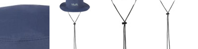 100% polyester Laser perf panels for breathability Full brim for sun protection Adjustable draw cord