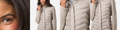 - Rib knit cuffs and waistband