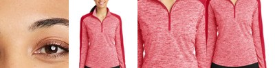 This lightweight pullover locks in color, wicks moisture, resists snags and has an amped up colorblock look. 4.1-ounce, 100% polyester yarn-dyed jersey with PosiCharge technology (Electric Heather) 4.7-ounce, 100% polyester jersey with PosiCharge technology (solid) Gently contoured silhouette Removable tag for comfort and relabeling Cadet collar Reverse coil zipper Colorblock on shoulders and sleeves Princess seams Set-in sleeves Open cuffs and hem Drop tail hem **