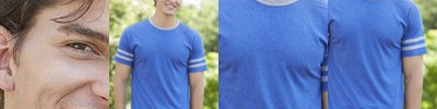 This perfect triblend tee fits closer to the body for a form-flattering silhouette. 4.5-ounce (153 GSM) 50/25/25 polyester/combed ring spun cotton/rayon, 32 singles Form fitting 1x1 rib knit neck Tear-away label Shoulder to shoulder taping Size up for a less fitted look