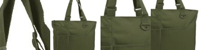 600D poly canvas; 360D poly twisted twill canvas Large zippered main compartment Interior padded laptop panel Front zippered pocket with interior organization panel Side mesh pocket Metal zipper pulls Over-the-shoulder length web handles Laptop sleeve dimensions: 13'h x 16'w; fits most 15' laptops Dimensions: 16'h x 15.5'w x 6.5'd; fits most 15¿ laptops; Approx. 1,612 cubic inches Note: Bags not intended for use by children 12 and under.