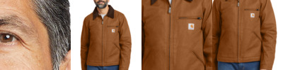 The original Detroit Jacket built a reputation for toughness on the backs of warehouse workers, farmhands and ranchers across America. With its signature corduroy collar and heavyweight fabric, this updated Detroit jacket is a rugged layer worthy of any job. 12-ounce, firm hand, 100% ring spun cotton duck canvas 100% polyester filling Wind Fighter ® technology tames wind Blanket-lined body for warmth Quilted nylon sleeve lining for easy on-and-off Corduroy-trimmed collar with hidden snaps for optional hood Two-way brass center-front zipper Left chest pocket with zipper closure Two interior pockets Two lower-front pockets Pleated bi-swing back Snap adjustable cuffs Carhartt-strong, triple-stitched main seams Carhartt label sewn on left pocket Relaxed fit