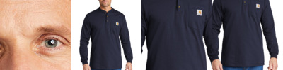 This henley is made of heavyweight cotton jersey and cut generously for a roomy fit. Durable 6.75-ounce, 100% cotton jersey knit 90/10 cotton/polyester jersey knit (Heather Grey) 60/40 cotton/polyester jersey knit (Carbon Heather) Rib knit crewneck Henley collar with three-button front Tagless neck label Left chest pocket Side-seam construction minimizes twisting Carhartt label sewn on left chest pocket Rib knit cuffs Loose fit